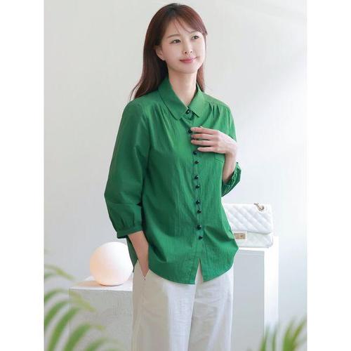[드리다]엄마옷 여성 여름 지지미 바스락 카라 빅사이즈 오픈 블라우스 셔츠 50-60대 미시 중년여성 마..