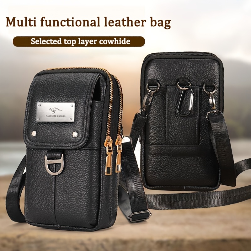 TEMU 정품 소가죽 남성 허리 가방, 다기능 지퍼 휴대폰 파우치, 조절 가능한 스트랩 및 넉넉한 수납공간, 업무 및 일상용, 캐주얼 스타일 탑 레이어 가죽 벨트 백|힙색|파우치|남자벨트