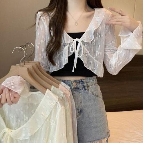 [오너클랜]인기상품 여성 레이스 플라워 패턴 숏 가디건 얇은 망사 카디건 [WDF441E_250916]
