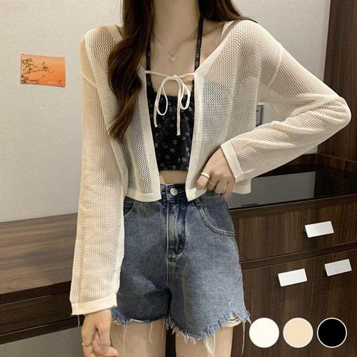 패션스타일 컬러 메쉬 가디건 여성 바캉스 망사 여름