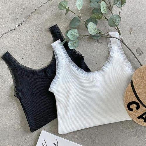 [옷자락]여성 데일리 이너 레이스 망사 비스코스 민소매 니트