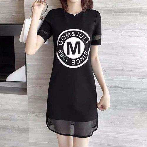 [모노무드]모노무드 여성 반팔원피스 2컬러 1P 밑단 망사 프린팅 치마