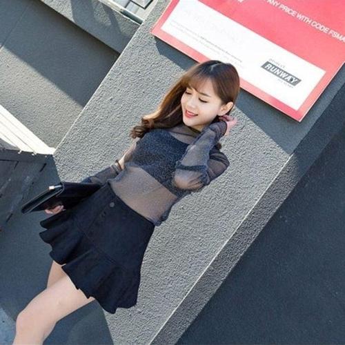 밸리걸 세이브존01 프릴 시스루 레이어드 망사 폴라 탑 803750