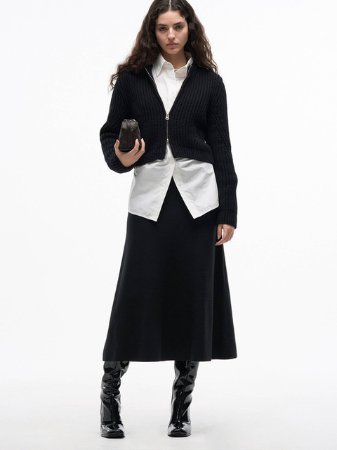 [매그제이] 울 니트 집업 점퍼 - 블랙