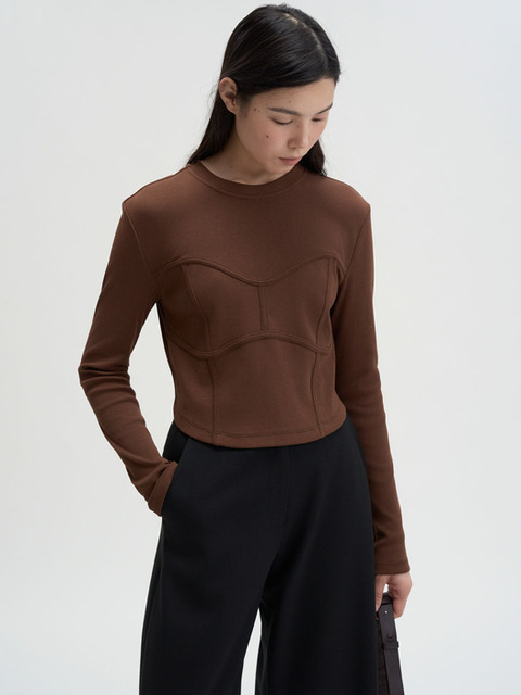 [매그제이] 웨이브라인 크롭 티셔츠 - 브라운