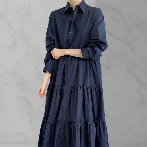 [옷자락] 여성 가을 박시핏 셔츠 원피스 포켓 셔링 캉캉 롱드레스
