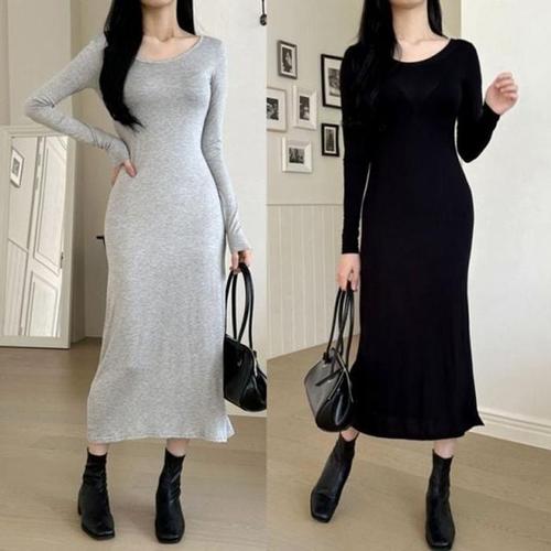 [라일리여성의류] Rly 긴소매 타이트 실루엣 미니사이즈 롱드레스쇼트 레