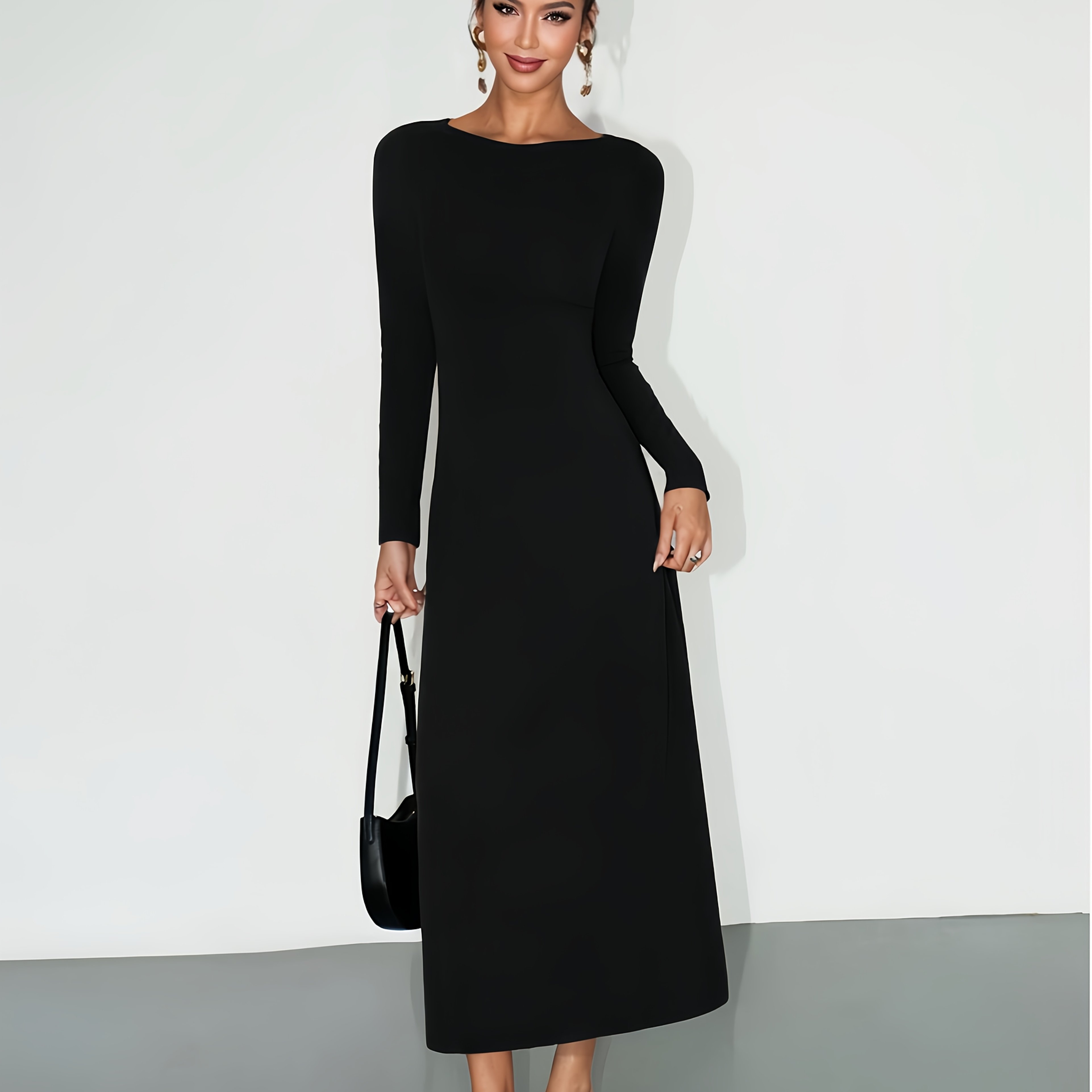 TEMU 여성을 위한 우아한 긴팔 블랙 드레스. 정교한 가을 룩을 위한 핏된 허리와 프렌치 하이엔드 분위기를 연출합니다.