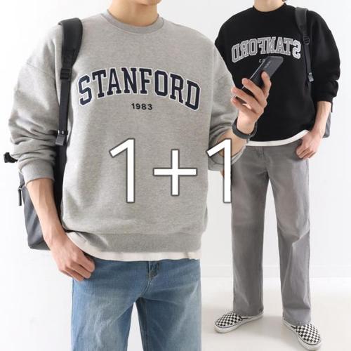 [지지블랙][1+1][기모] 어깨가 넓어보이는 스탠포드 자수 오버핏 맨투맨 티셔츠 ZZBMT039