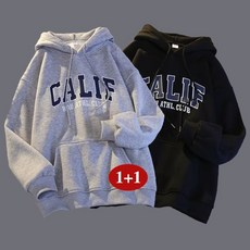 Asure 데일리 봄 가을 겨울 빅사이즈 레터링 프린트 후드 포켓 긴팔 풀오버 맨투맨 1+1