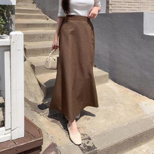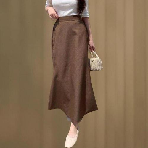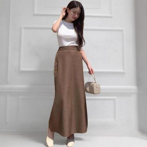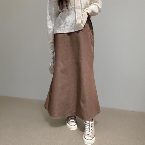 [옷자락] 여성 클래식 머메이드핏 뒷밴딩 신축성 롱 스커트
