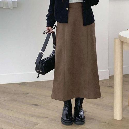 [옷자락]여자 캐주얼 스웨이드 뒷트임 머메이드 롱 스커트