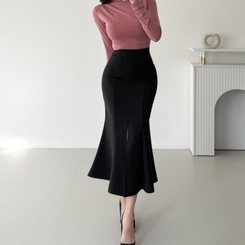 [옷자락]여성 앞트임 머메이드 롱 스커트 절개선 디테일