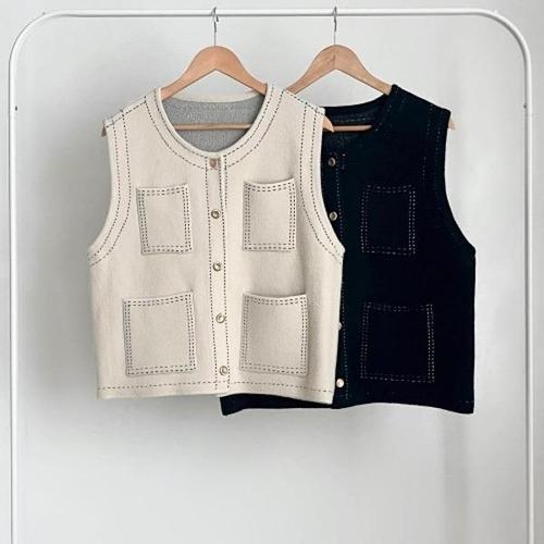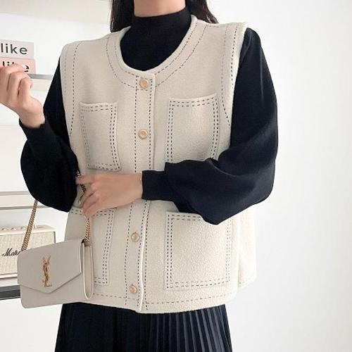 [옷자락]여성 스티치 멀티포켓 라운드넥 가을 니트조끼