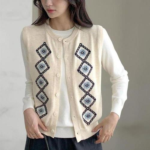 [다잇템]여성 FW U넥 멀티포켓 자수 니트조끼