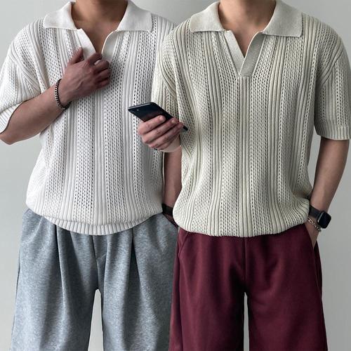 [모노폴로지]남자카라반팔니트 코튼 메쉬 남성니트반팔티