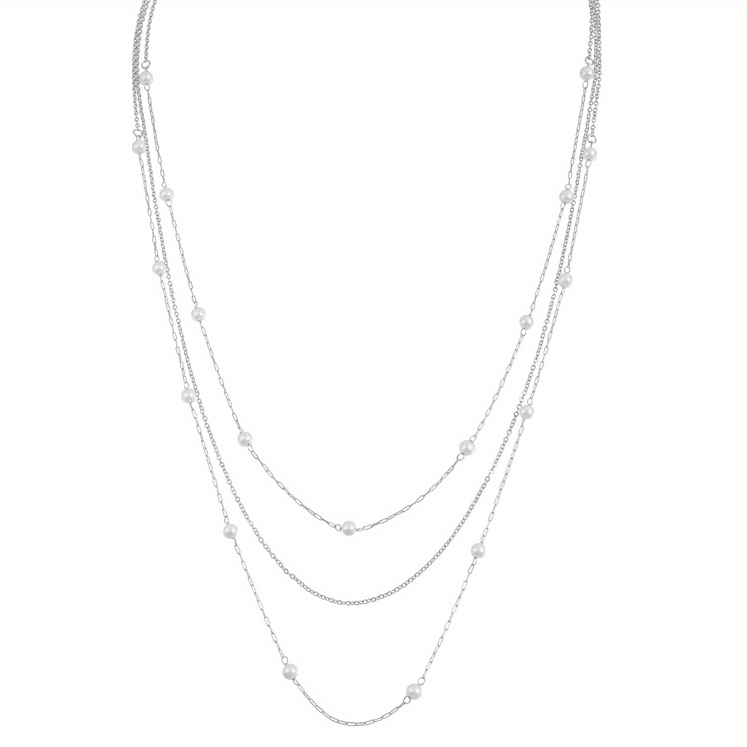 TEMU 여성을 위한 기하학적 레이어 스웨터 목걸이, 합금 상감 인조 진주 디자인 특징. 빈티지 스타일의 고급스러운 롱 액세서리는 일상복 및 파티에 완벽합니다.