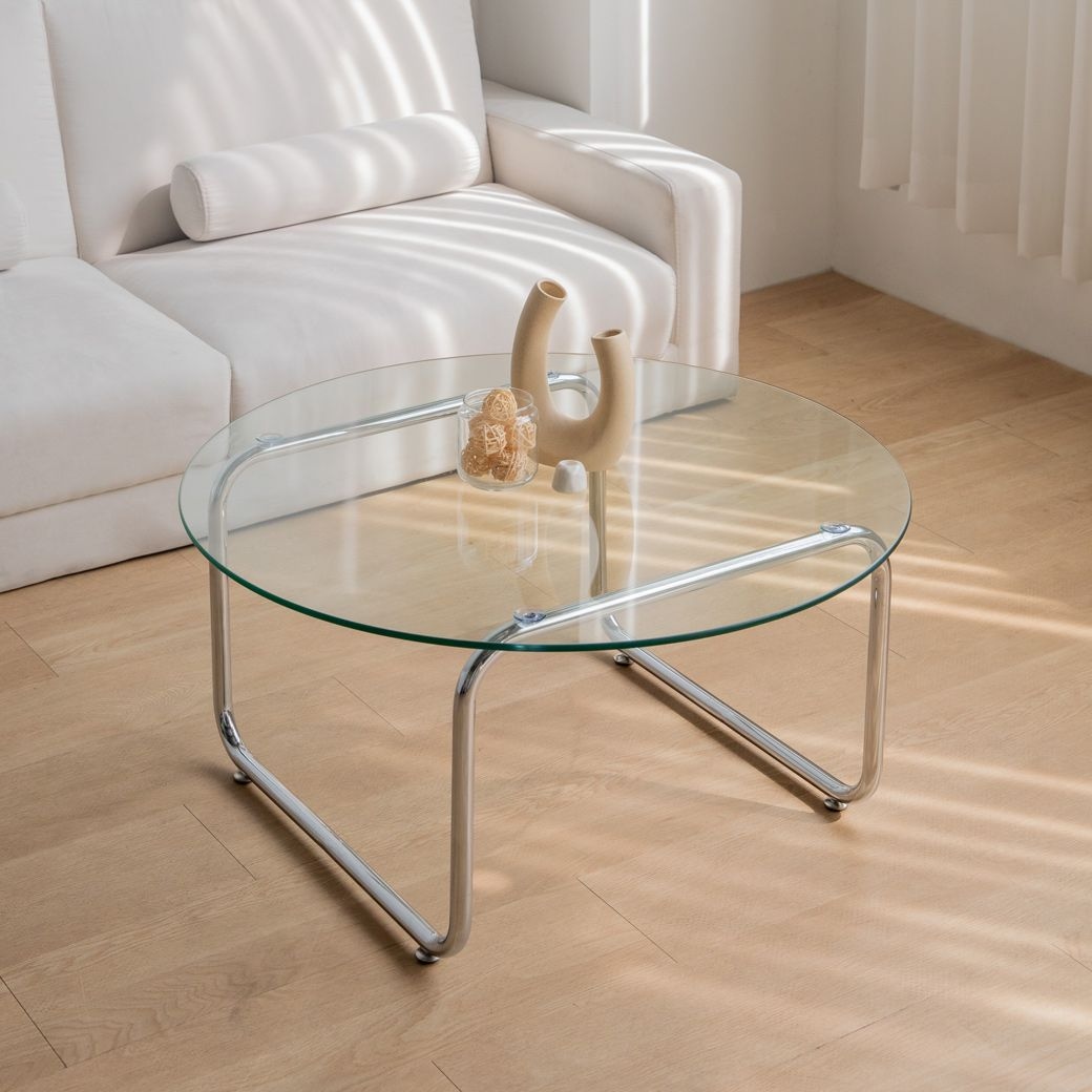 메탈테이블 원형 강화유리 좌식 거실 소파 투명 철제 크롬 테이블 800mm