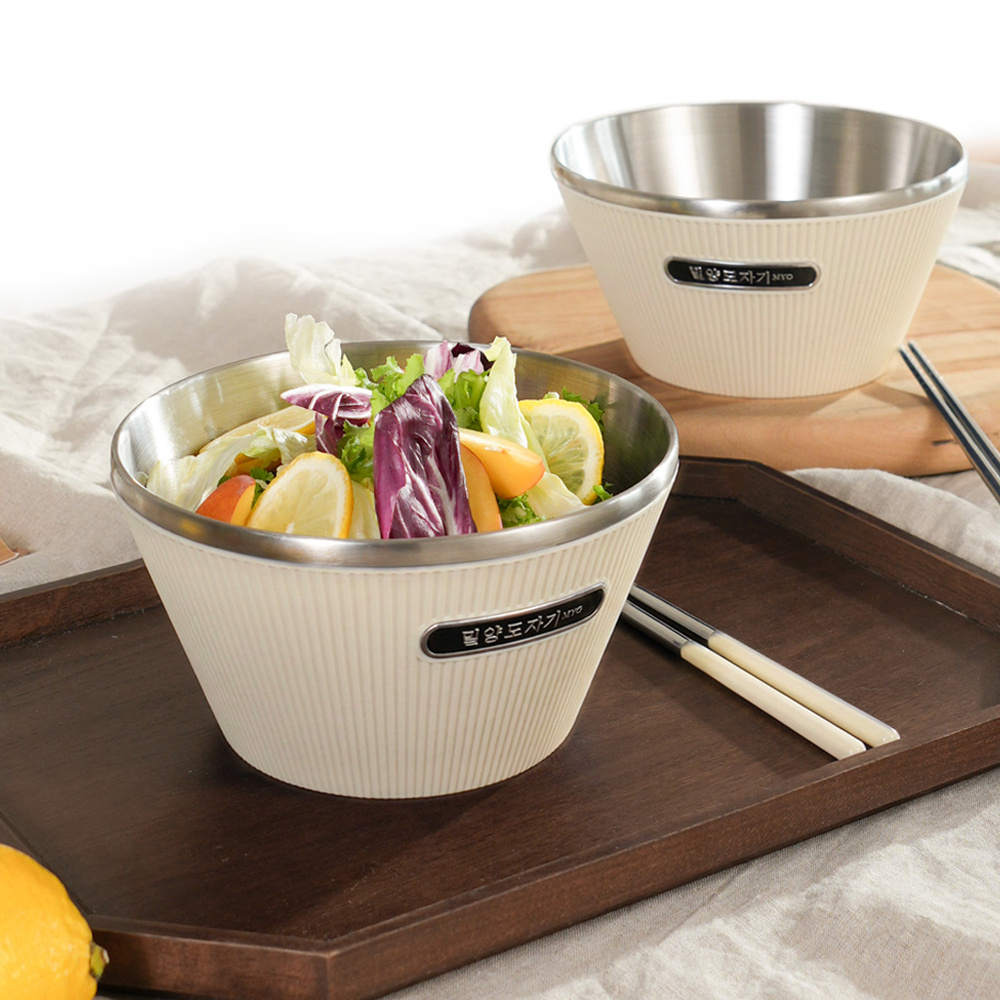 ORZQU 더블손잡이 화상방지 스테인리스 대용량 라면볼 전자레인지용 밥그릇