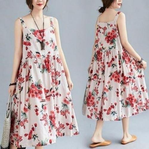 (브랜드 추천) 85kg까지 빅사이즈 1+1 여성 면 100% 빈티지 민소매 나시 원피스 여름 편한 심플 우아한 단아한 모던 에스닉 쿨 a라인 스커트 세련된거 날씬해보이는 원피스