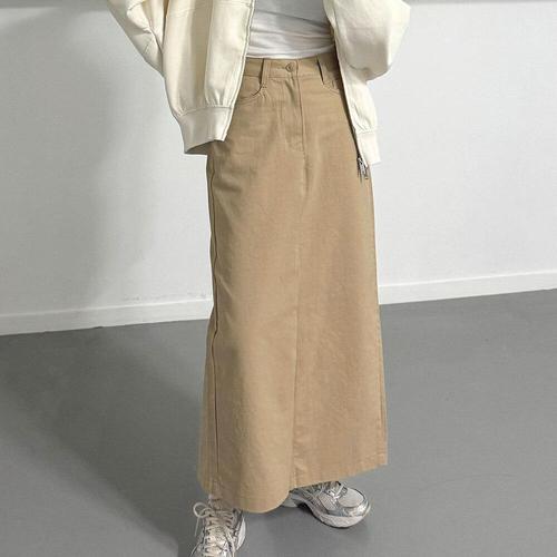 [미라클세븐]여성 뒤트임 스트레이트핏 바이오 코튼 데일리 가을 롱스커트