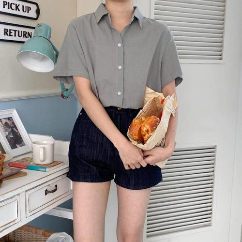 [다잇템][다잇템] 여성 톤다운컬러 셔츠 마원단 베이직 코튼 반소매 셔츠_23328376_588872
