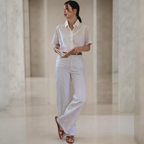 [옷자락]여성 클래식 톤다운 컬러 면 린넨 반팔 셔츠