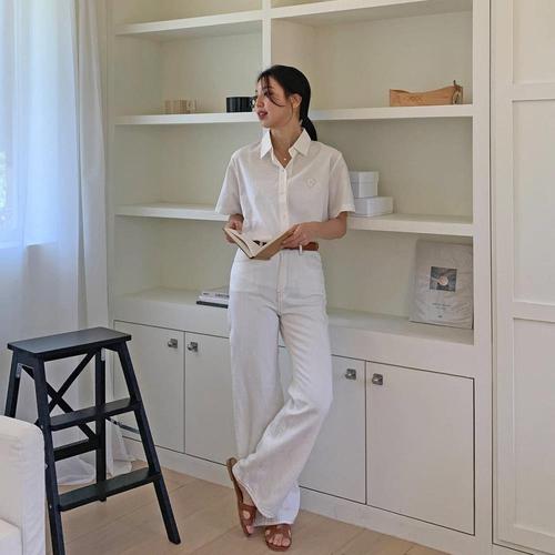 엘케이트 여성 반팔 롤업셔츠 루즈핏 시원한소재 여름 면남방 LBB004