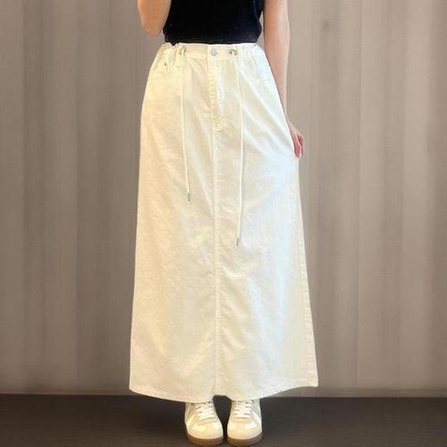 [신상오픈런]여성 스트링 A라인 절개 디자인 뒷트임 여름 면 롱스커트