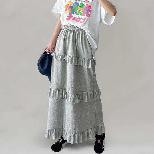 [옷자락]여성 여름 코튼 프릴 캉캉 밴딩 롱스커트 무채색