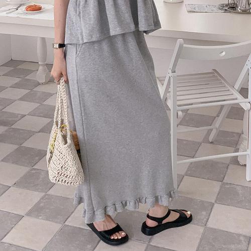 |KSK1587|여자 프릴치마 H라인 뒷트임 코튼 여름 밴딩 롱스커트