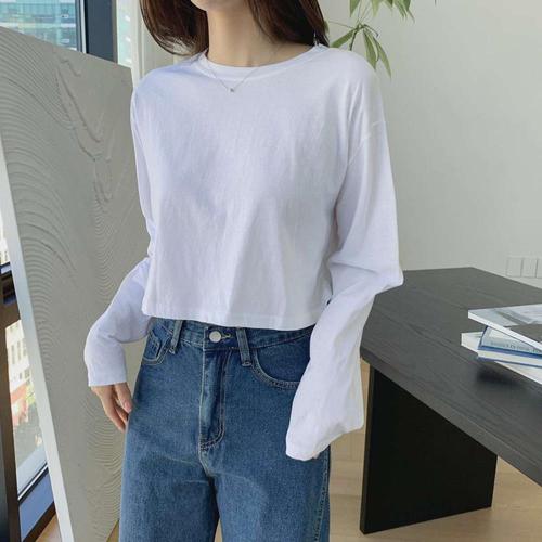 [다잇템]여자 무지컬러 롱슬리브 캐쥬얼 면100 티셔츠