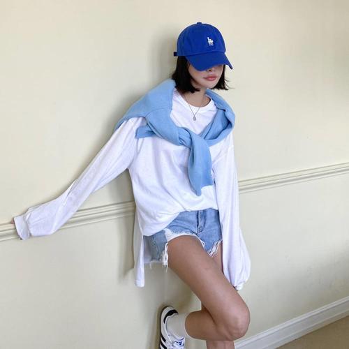 [다잇템]여성 기본색 면100 박시핏 롱슬리브 티셔츠