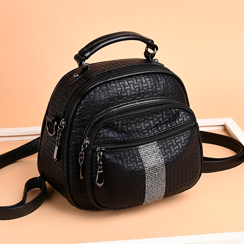 TEMU 덴글다이슈 여성용 컨버터블 미니 백팩 - 탈부착 가능한 조절 가능 어깨끈, 지퍼 잠금장치, 안감, 컴팩트 블랙 데이백, 캐주얼 & 오피스 & 여행용, 다기능 휴대 가방, 세련된 스타일, 내구성 있는 구조, 트렌디한 여행가