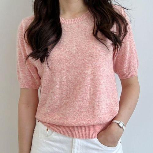 [모노무드]MNO 캐시 레이디스 울탑 반소매 크루넥여성용 데일리 니트탑 풀오버 15색
