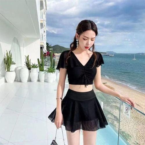 [에이치플러스몰]은창)날개 프론트 셔링 2피스 비키니 수영복 모노키니