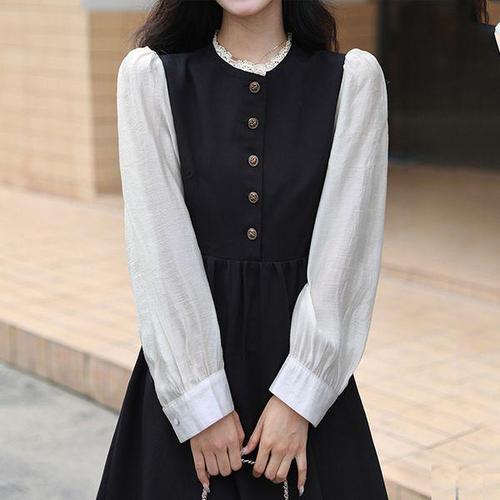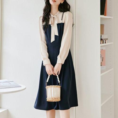 [모니카제이]리본 배색 플레어 롱원피스(n1145)