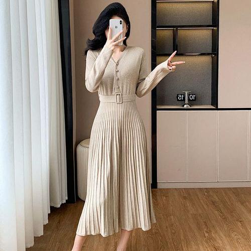 [애비뉴투지]엄마옷 모니카 삼색 플리츠 라운드 베이지 여성 봄 가을 칠부 캐쥬얼 롱 원피스 O10003