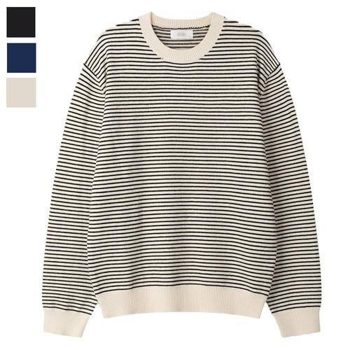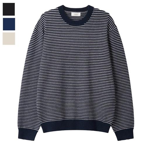 [리빌모아]남자 록스 스트라이프 모달 라운드 긴팔 니트 SG-KN-Q081-크림