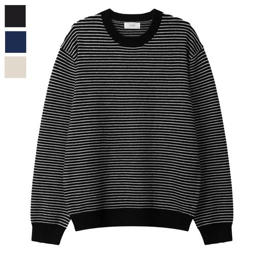[리빌모아]남자 록스 스트라이프 모달 라운드 긴팔 니트 SG-KN-Q081-검정