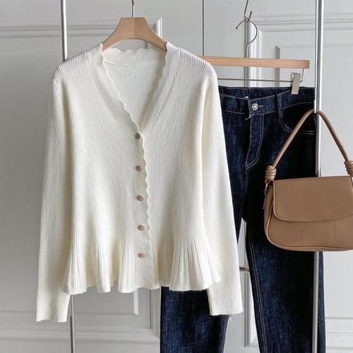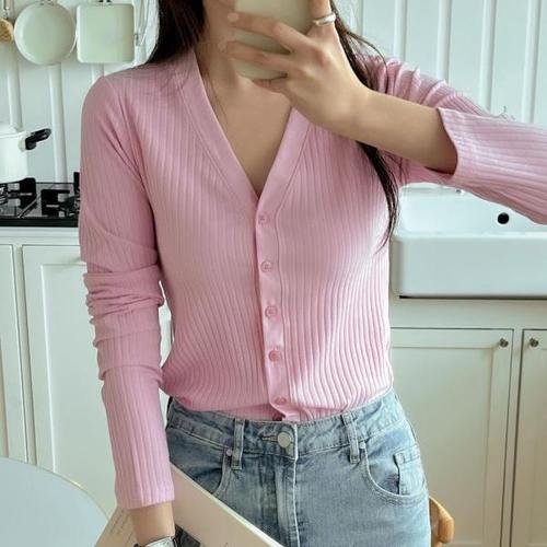 [옷자락] 여성 모달 골지 브이넥 가디건 단추포인트