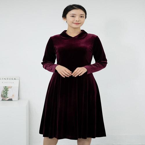 [모슬린]엄마옷 벨벳 무지 카라 원피스 516FGH369 마담/중년여성/빅사이즈/50대/60대