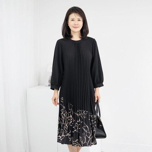 [모슬린]엄마옷 라운드 주름 긴팔원피스 515FGH511 마담/중년여성/빅사이즈/50대/60대