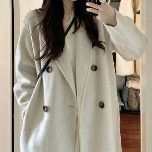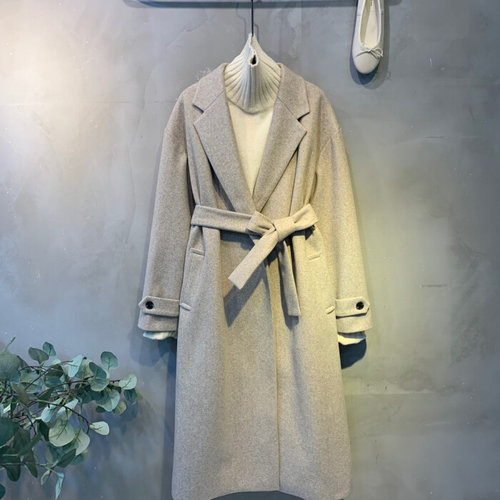 고품질 여성 모직 롱 코트 루즈핏 로브 아우터 베이지 루즈핏자켓 로브아우터 모직자켓 겨울코트 (WFHSDRR)