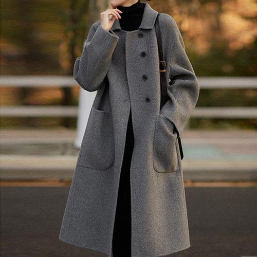 여성롱코트 여성 더블 단추 모직 롱코트 1P 간절기 심플 아우터