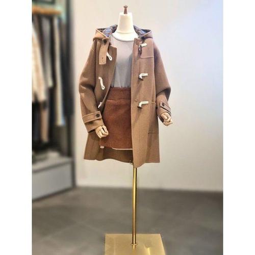 1/1+1여성 후드 모직 코트 롱 플리스 후드 코트 빅 겨울 모직코트 모던 기모 모직 코트