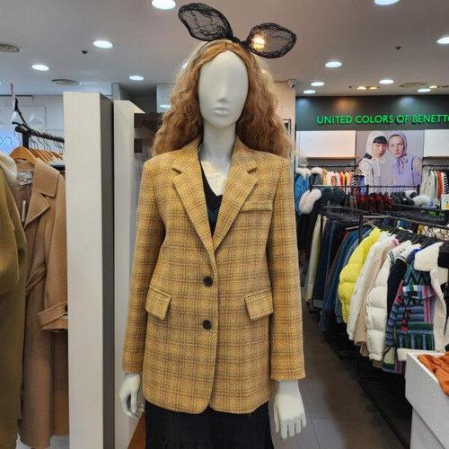 여자 아우터 하프기장 체크 자켓 간절기 모직 루즈핏 WFLQ8C3