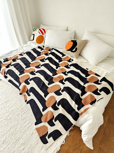브라운앤블랙 톤온톤 니팅 술 모티브 소파커버/러그/블랭킷