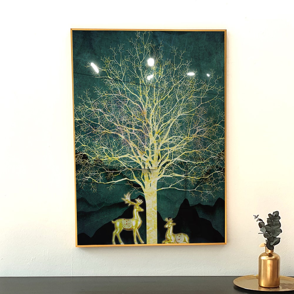 돈들어오는 부자되는 황금나무 그린 커플사슴 그림 인테리어 액자 집들이 개업 부모님 선물