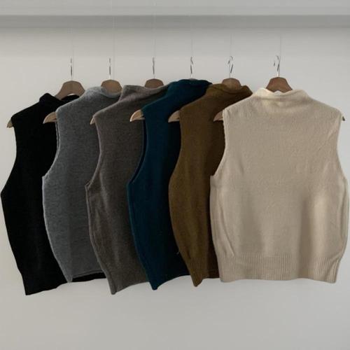 [미라클세븐]여성 겨울 니트 조끼 목폴라 레이어드 기본 무지 디자인